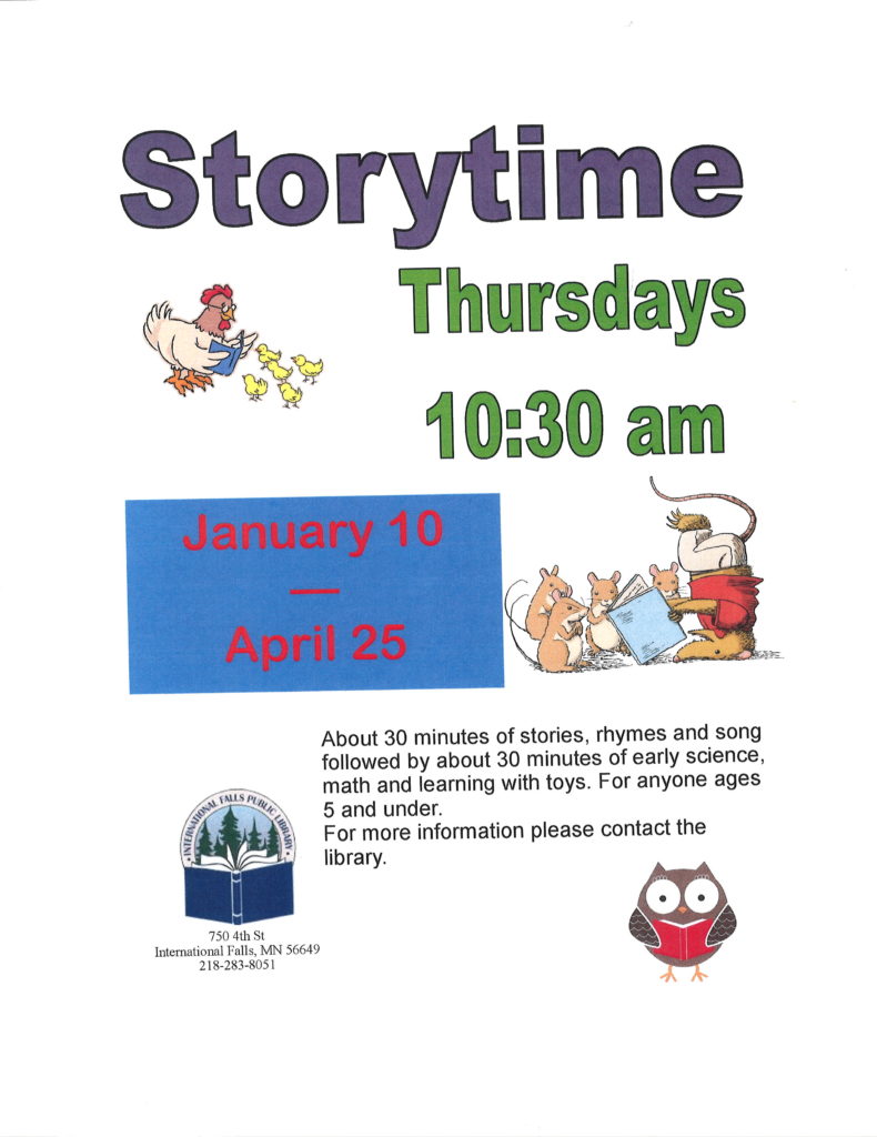 Storytime will take a brief hiatus for the Holidays. December 20th is the last one for 2018. We will start up again on January 10th and run through the end of April. Every Thursday. 10:30am. After storytime, we play with toys for about half an hour. It’s all kinds of fun for children from birth through age 5. Won’t you join us?