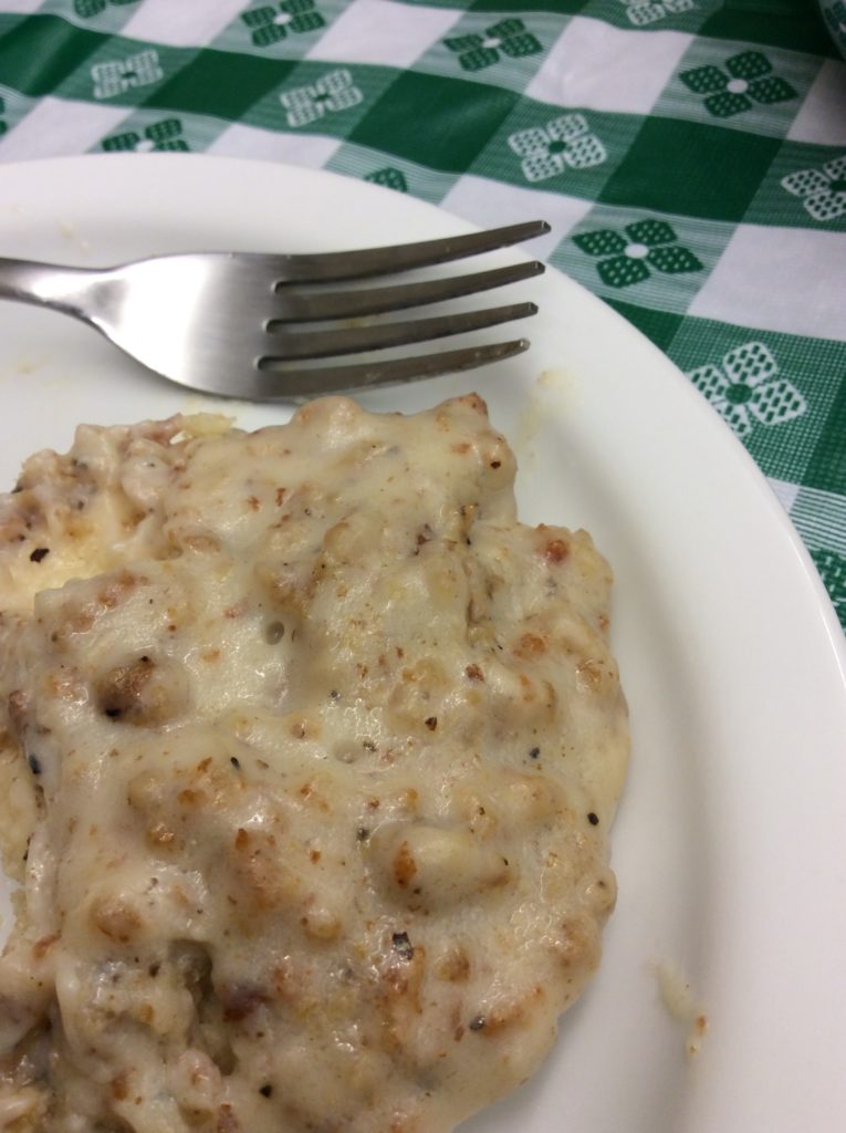 We baked this dish in the toaster oven, and cooked the gravy below on the induction stovetop at the library.